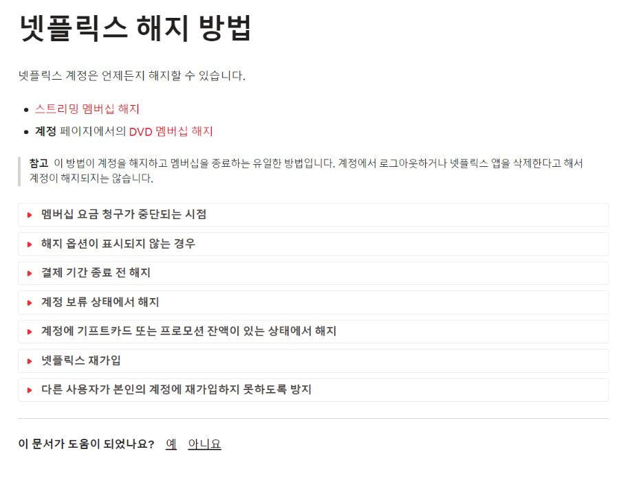 또는 고객센터에서 넷플릭스 해지를 검색하면 위의 이미지와 같은 화면이 나옵니다.