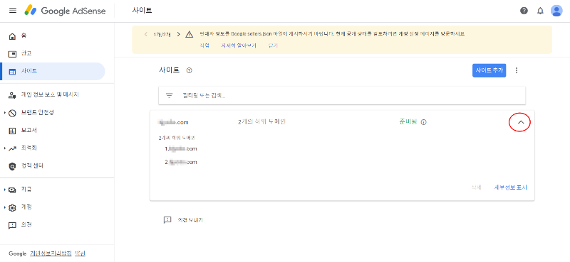 기존 애드센스 사이트에서 기존 도메인 외에 하위 도메인도 연결할 수 있도록 되어있었습니다.