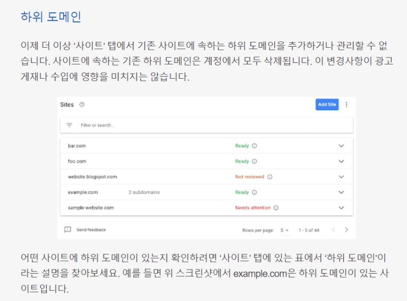 사이트 관리 기능이 변경되고 기존 하위 도메인이 삭제된다고 하는데